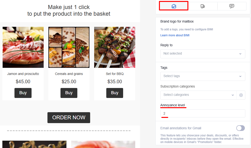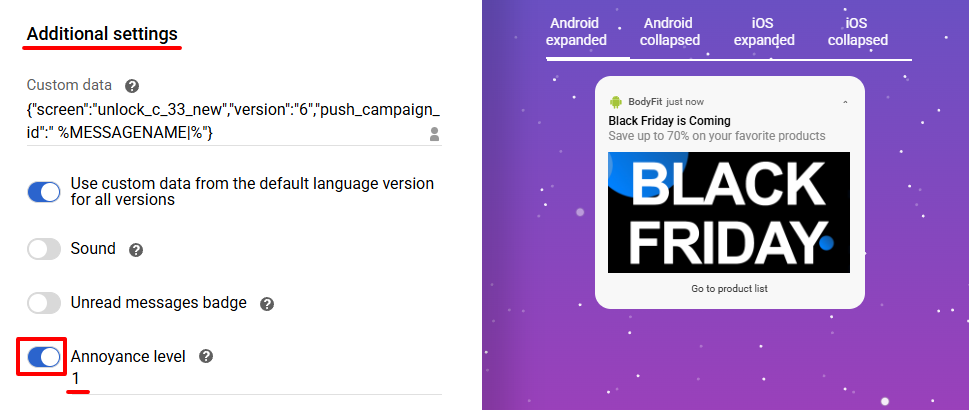 In the Additional settings, enable Annoyance level and set the value.