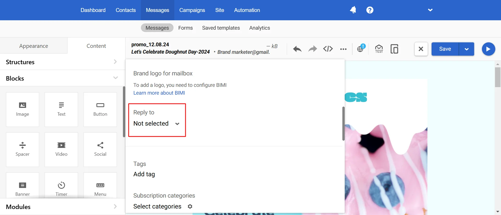 If you do not specify the name of the email when saving, the subject of the campaign will be automatically inserted into this field.