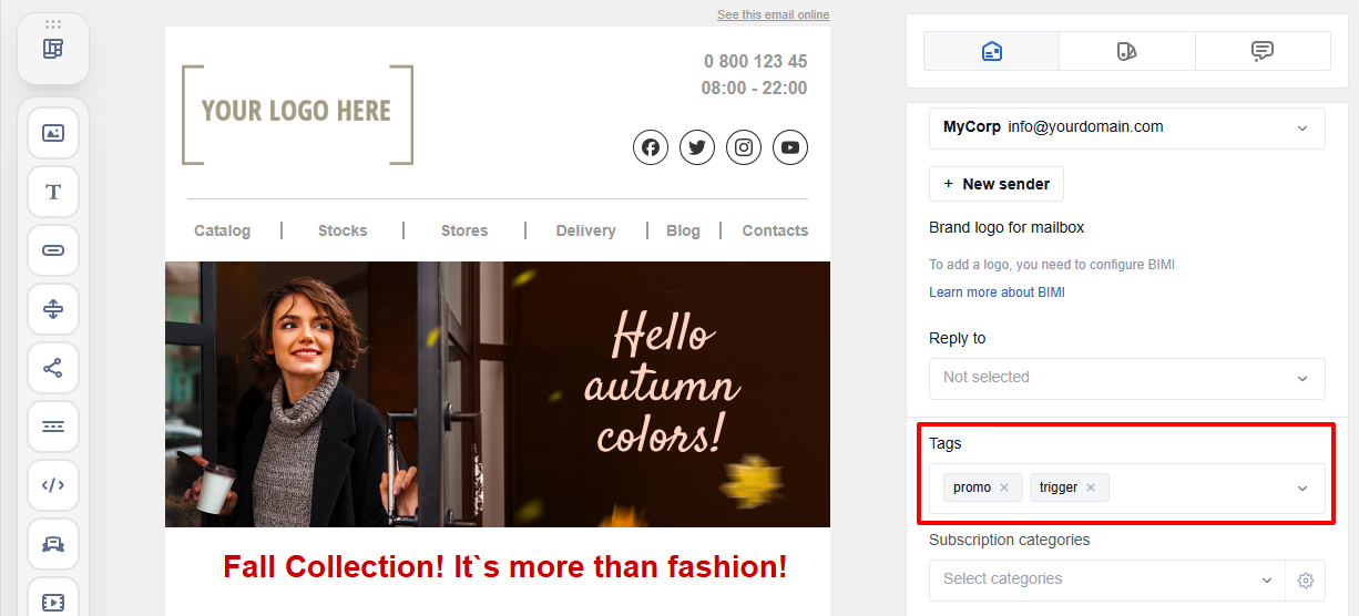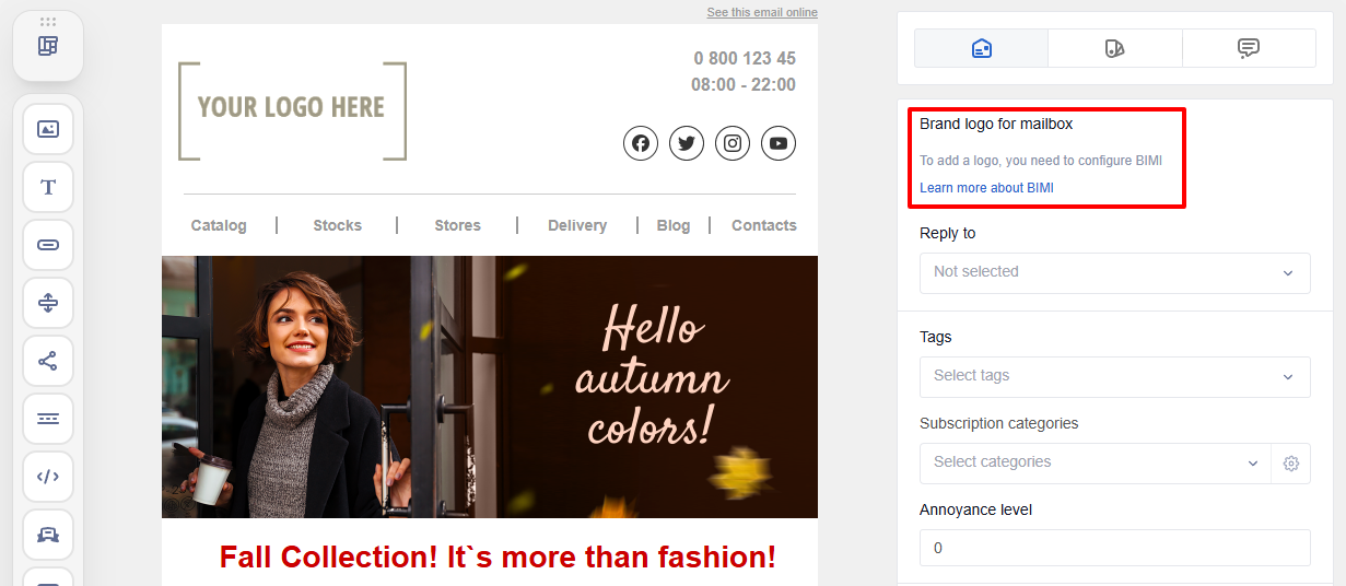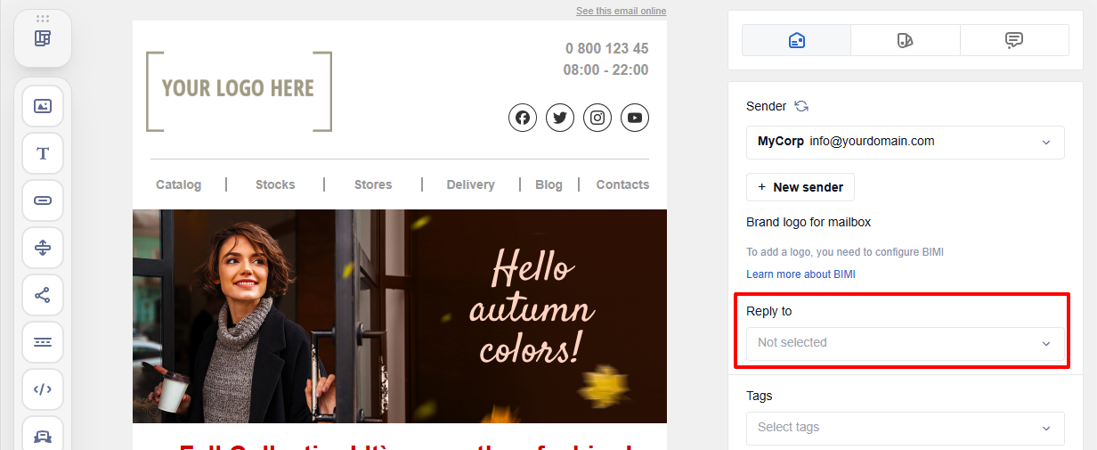 At this stage, specify the main email parameters in the Message Settings side panel.