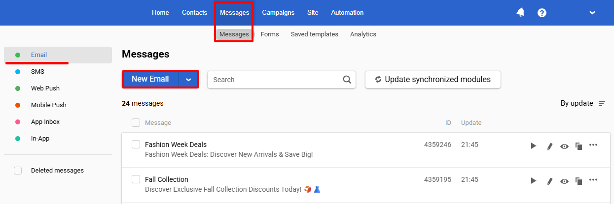 - Go to Messages ā Messages ā Email and click New Email.