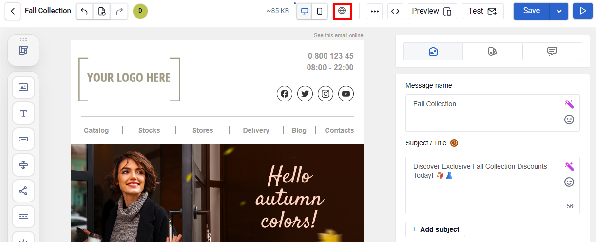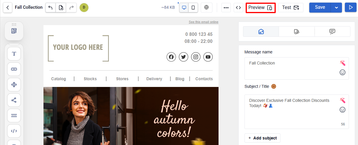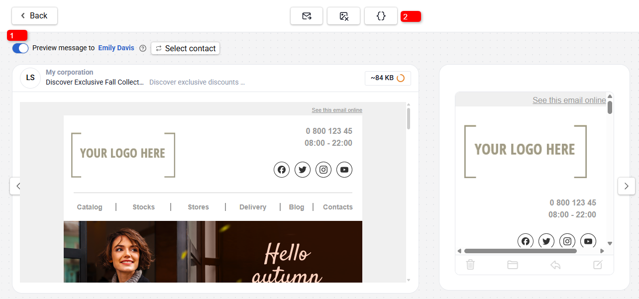 While creating a message, you can easily preview how it will look on desktop and mobile devices.