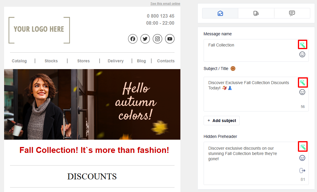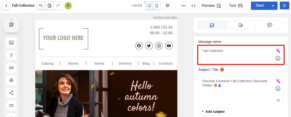 NoteYou can use Improve with AI to optimize the message name, subject, and preheader.