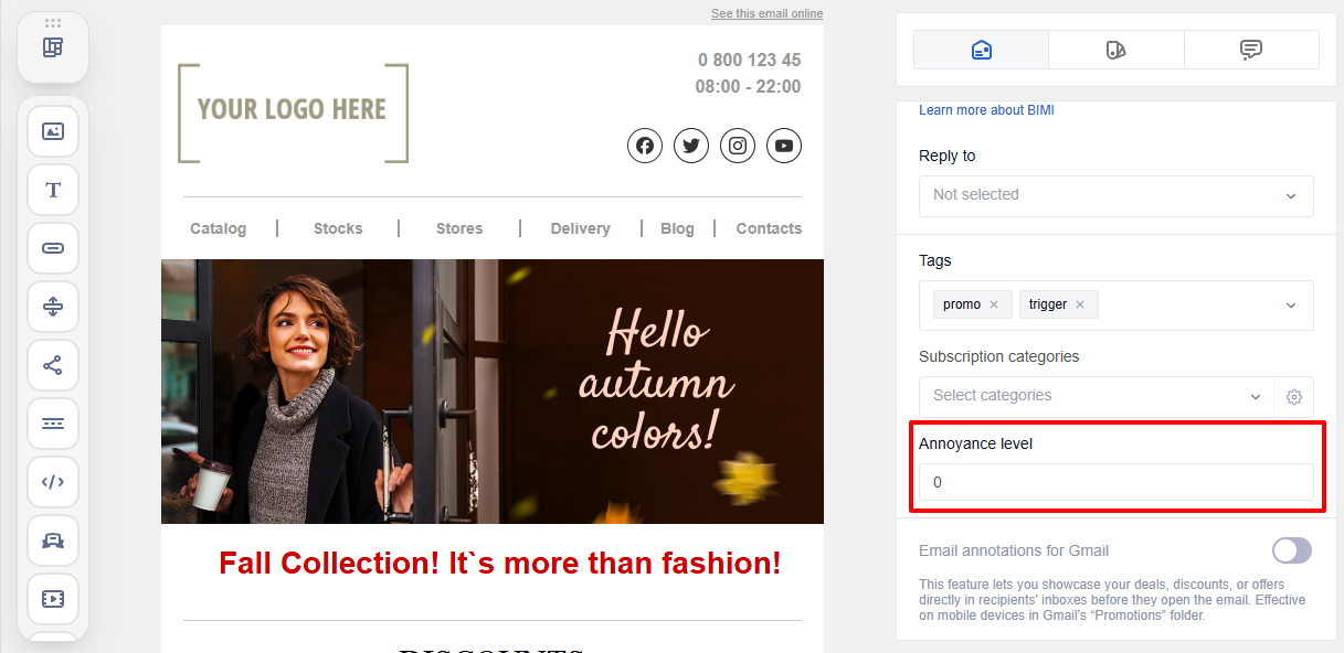 The Annoyance level helps limit message frequency and reduce subscriber fatigue.