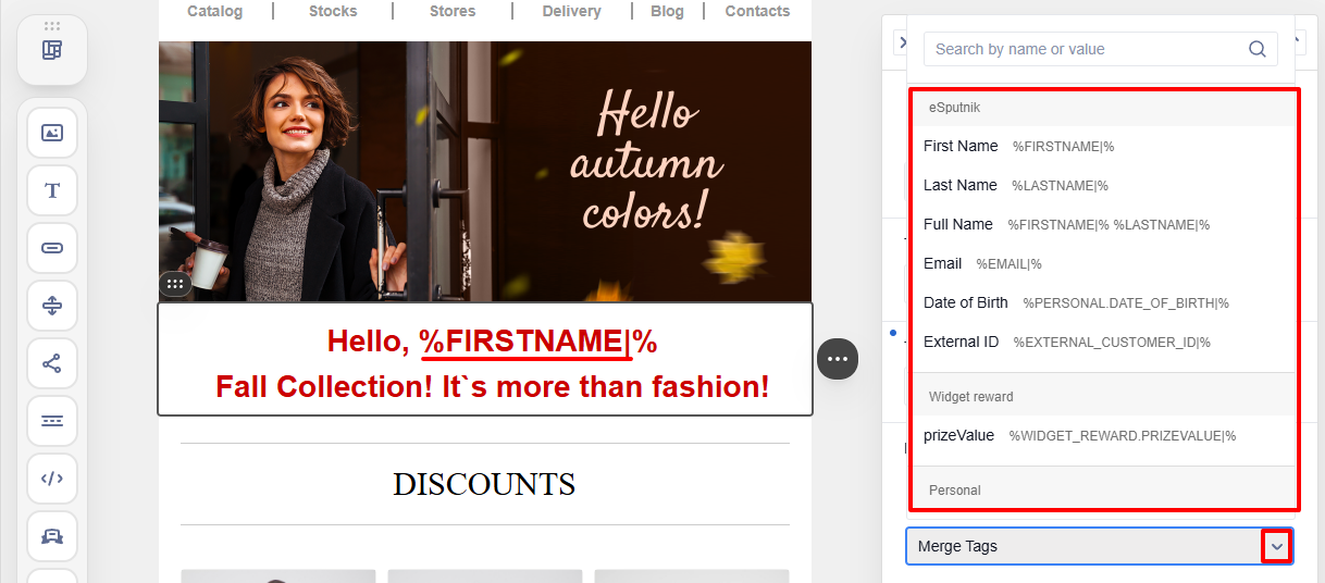 - built-in merge tags;