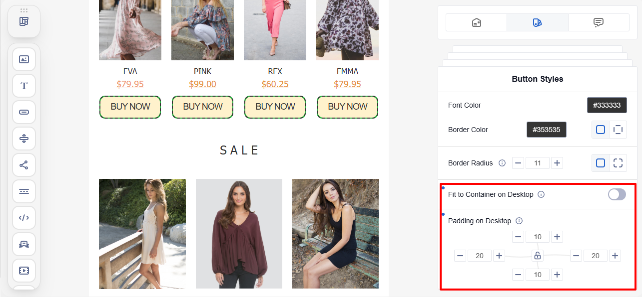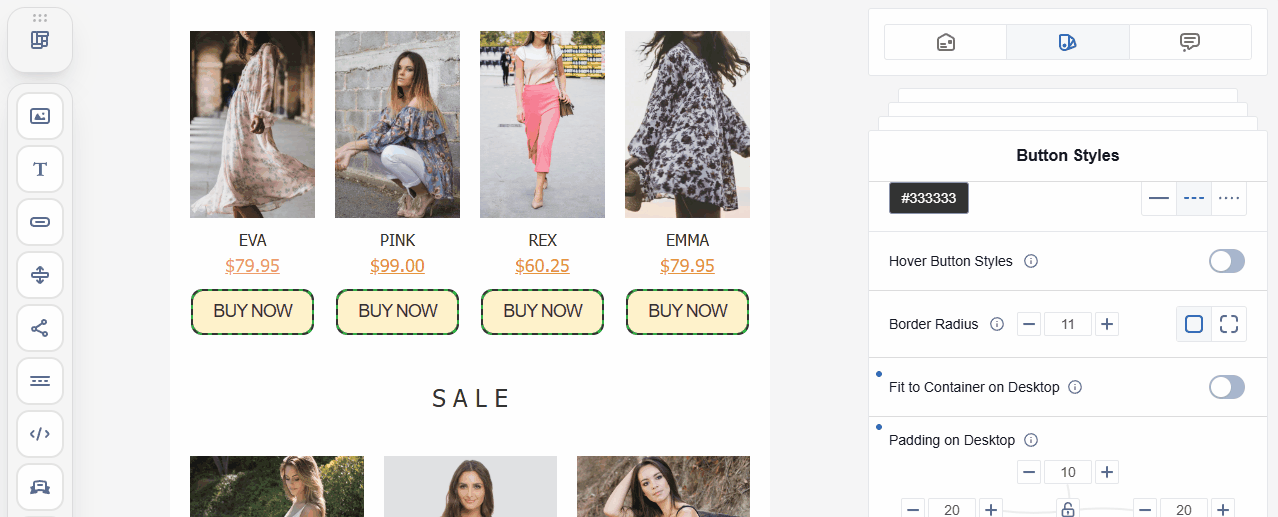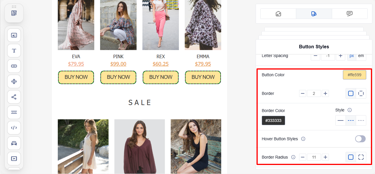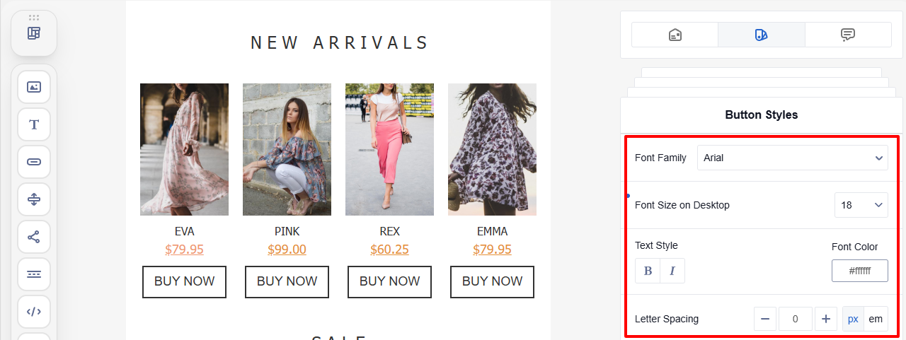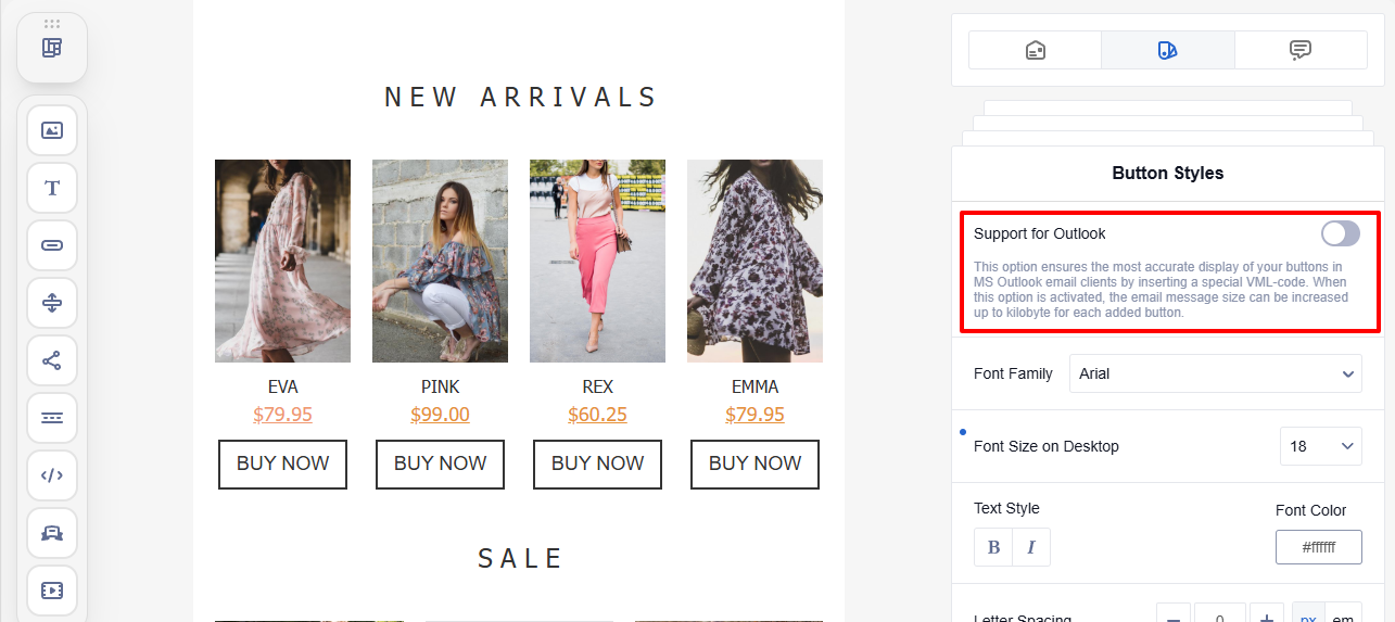 Set a consistent appearance for all buttons in the email, regardless of their placement.