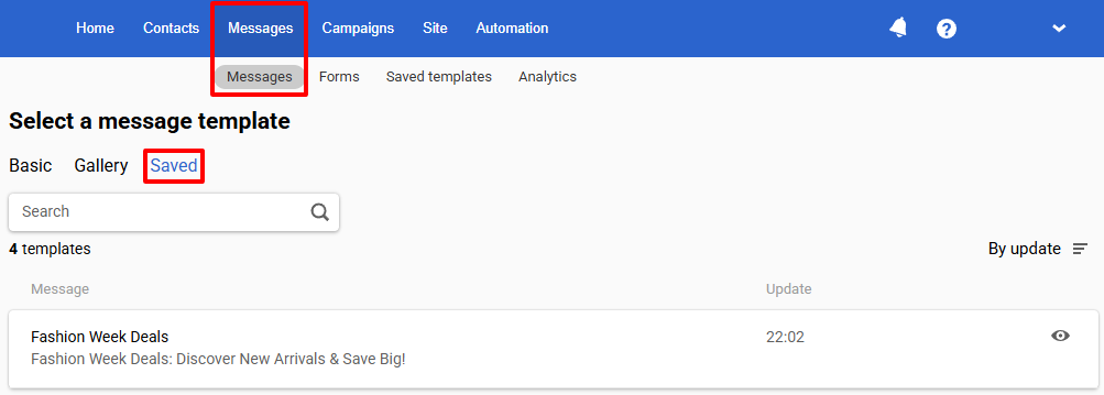 All saved templates are available in Messages ā Messages ā Saved.