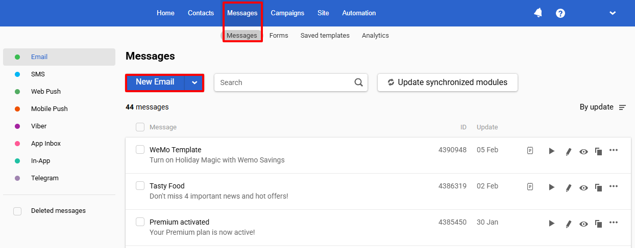 An email template is a set of typical email blocks, such as a menu, header, footer, etc. You can use the same template for different campaigns by simply filling it with new content.