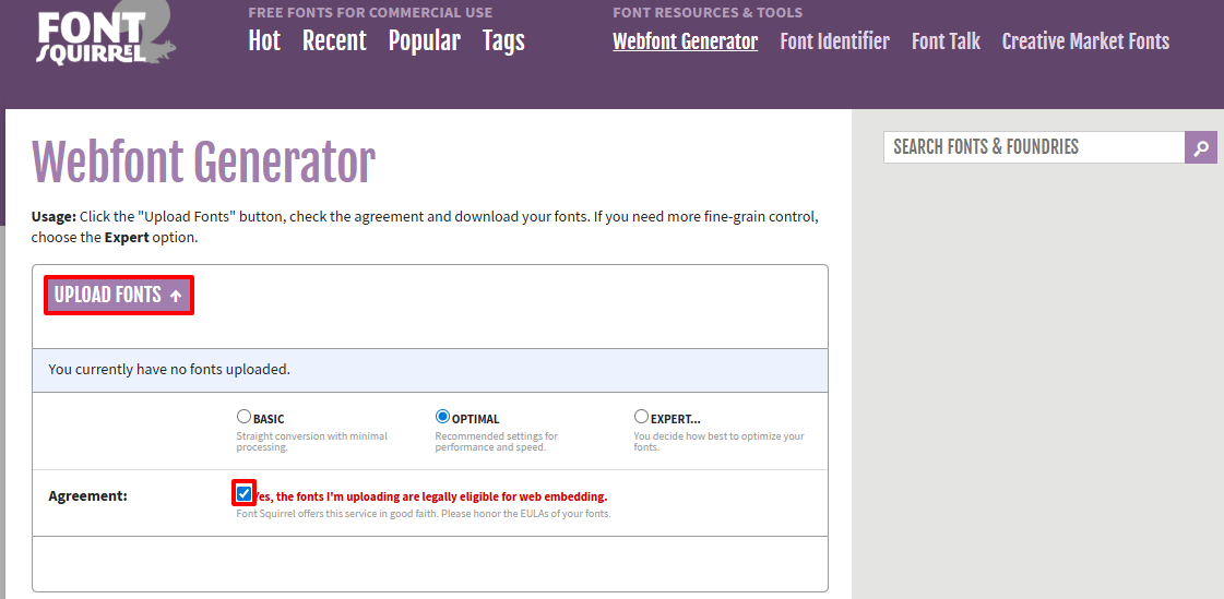 To upload your font, you need to add the link to your server CSS file in the URL with CSS file field.