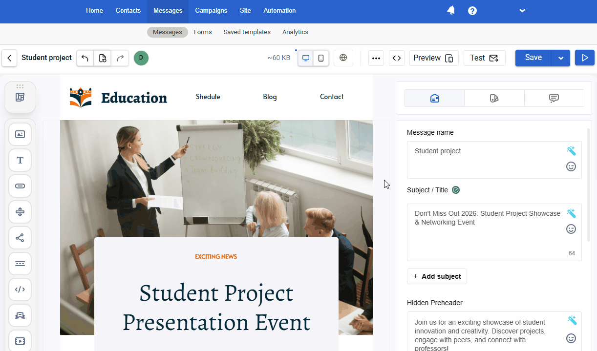- When you use a custom font, consider how the email looks in clients that donāt support it. Fallback fonts may appear larger and break the layout. Always test the email and configure fallback font family, size, and spacing to ensure correct rendering.