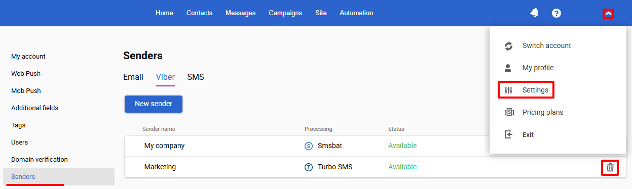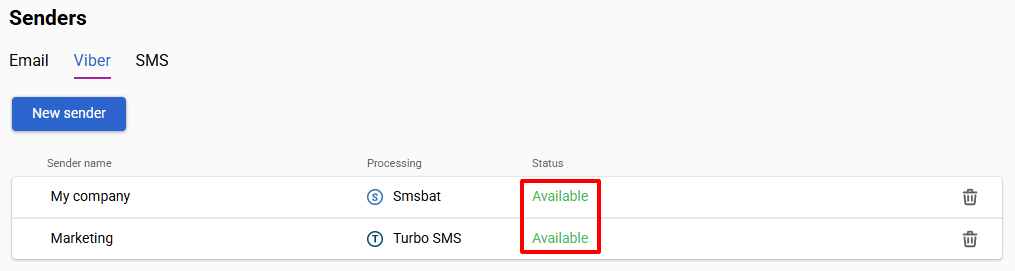 Before starting Viber campaigns, you need to register a sender name from which the campaign will be sent.