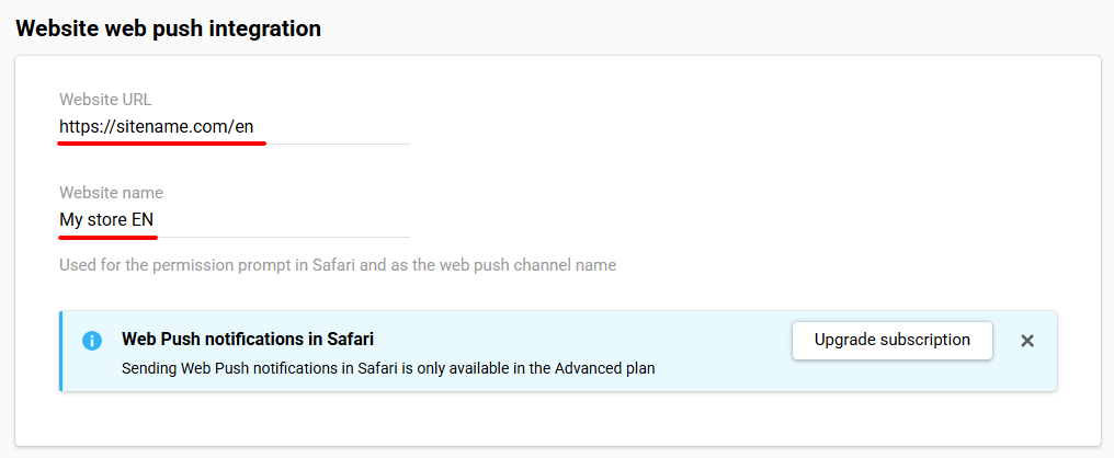 NoteSending Web Push notifications in Safari is only available in the Advanced plan