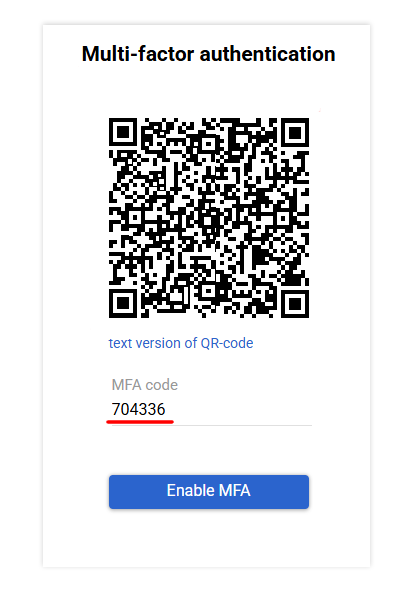 - Enter the 6-digit code from the app in the MFA code field (without spaces).