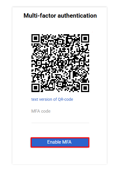 - Click Enable MFA.