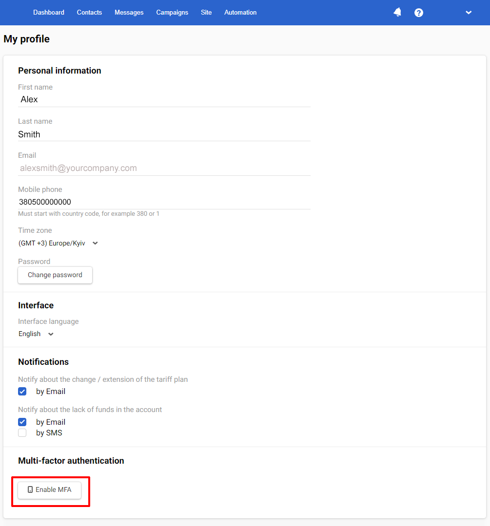 - In the Multi-factor authentication section, click Enable MFA.