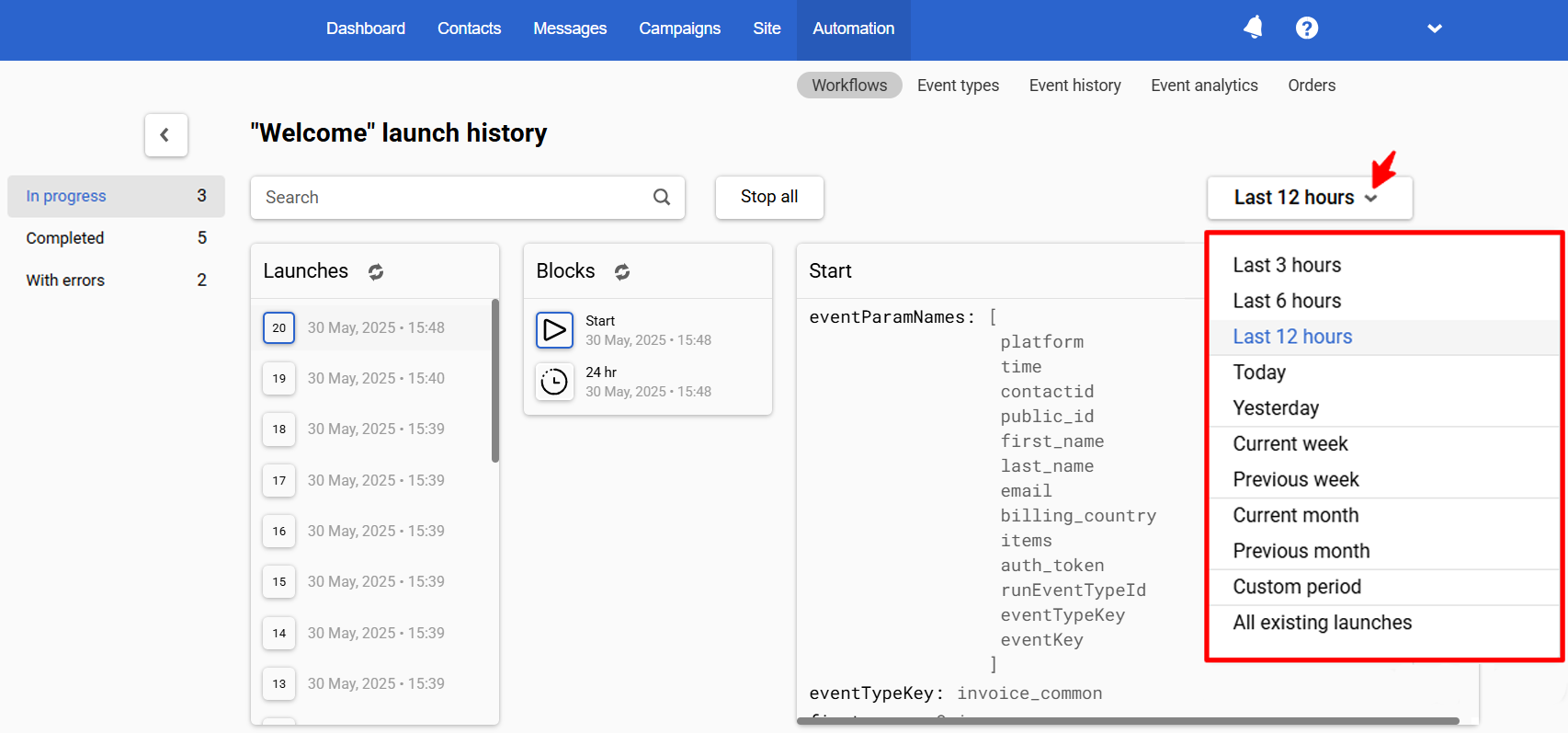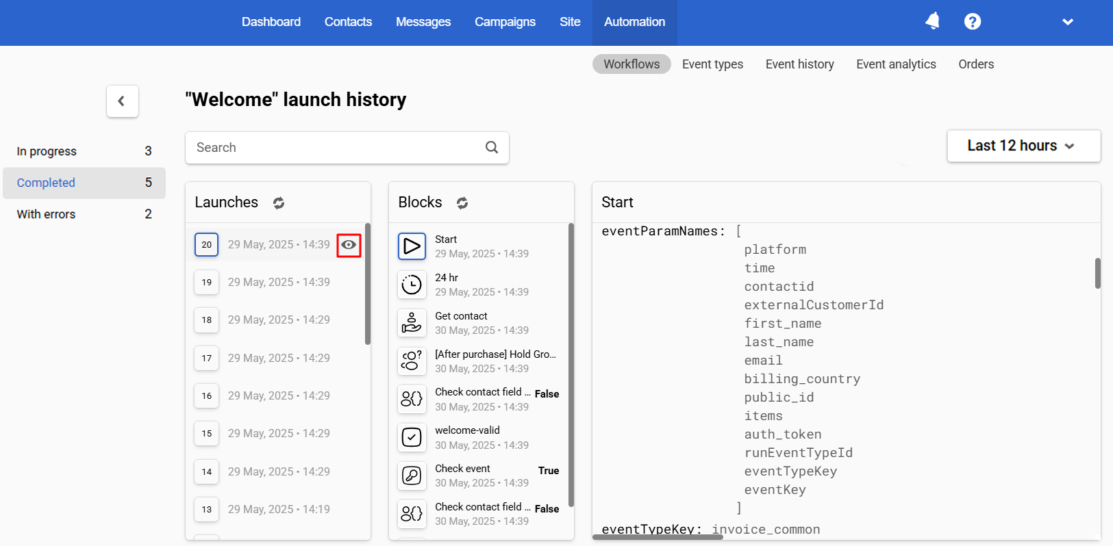 NoteYou can also view the workflow launch history directly in the editor by clicking the corresponding button