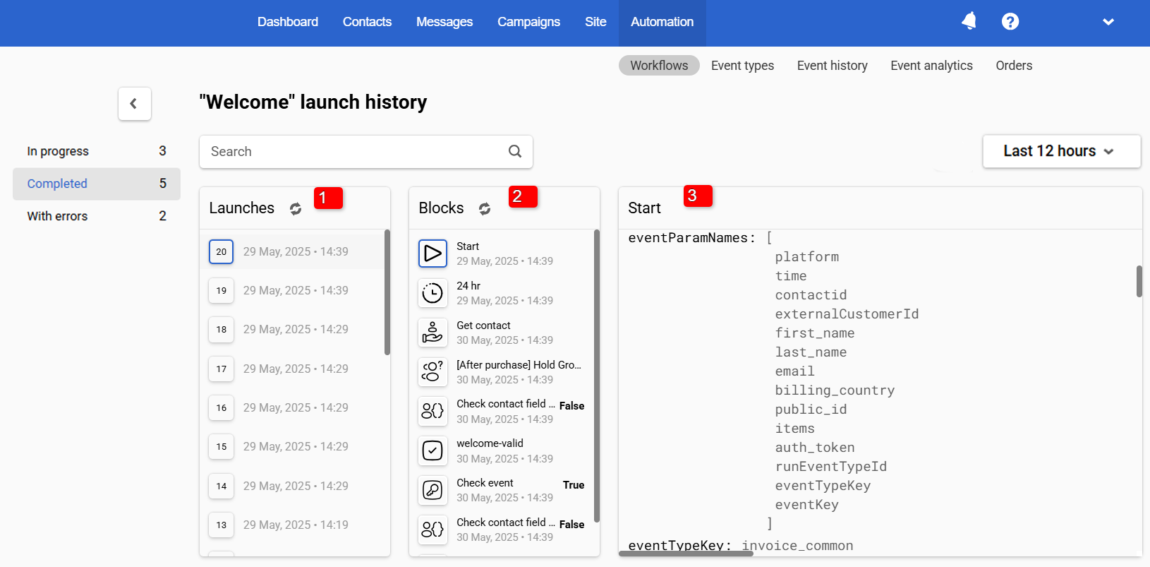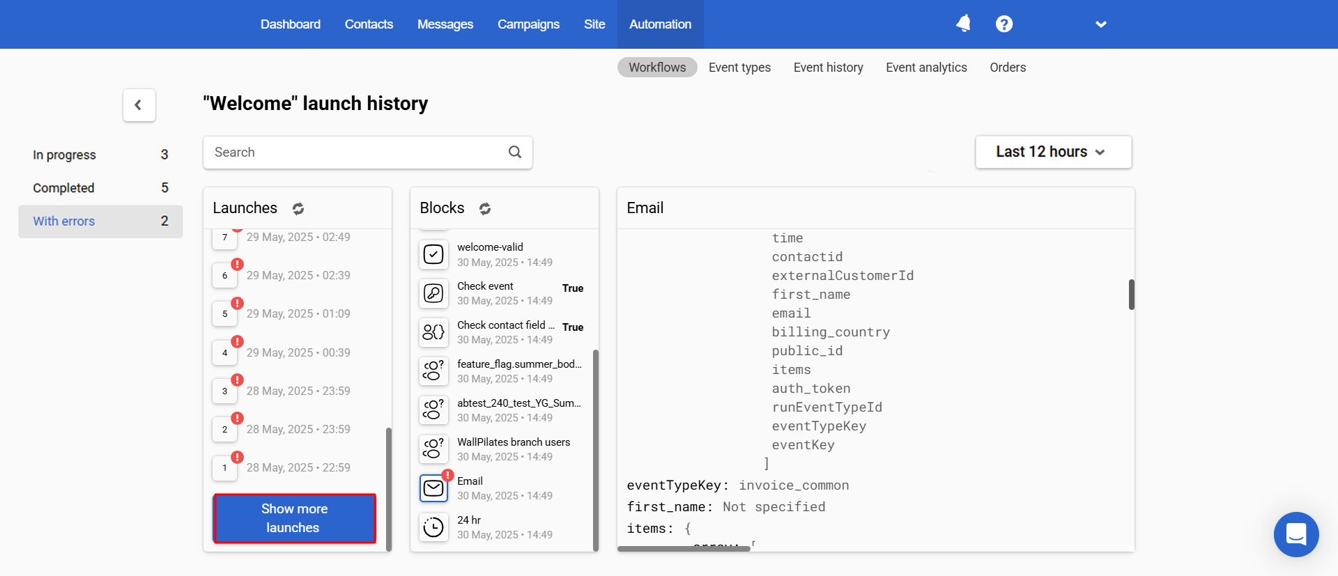 Track statistics on the number of workflow launches and check for errors in its blocks.